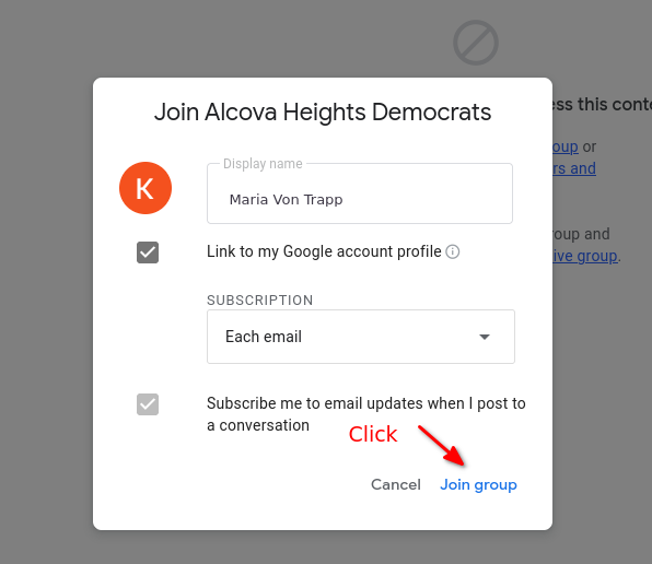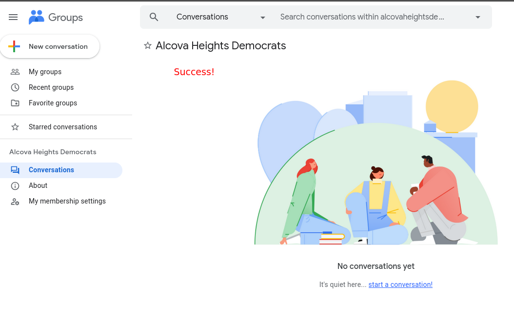 7. To send a message to the group, compose an email to: alcovaheightsdemocrats@googlegroups.com